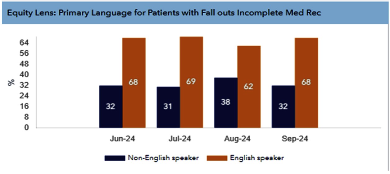 Conclusions: To conclude, admission medication reconciliation is a safety intervention emphasizing the importance of comparing pre-admission with newly prescribed medications. Since the launch of the initiative,our study showed continuous improvement in the rate of reconciliation of outside medication and of prior admission medication. From our equity lens study, language barrier remains as a hindrance to the completion of the process. Interventions to improve compliance of the initiative include simplifying the steps in EPIC to facilitate completion. Health care providers also collaborated with the clinical pharmacist team to improve the rate of accuracy. By completing reconciliation within 24 hours using multiple information sources, we enhance individualized care and minimize errors while continuously rectifying our deficiencies based on audits and feedback to ensure ongoing safety and quality.