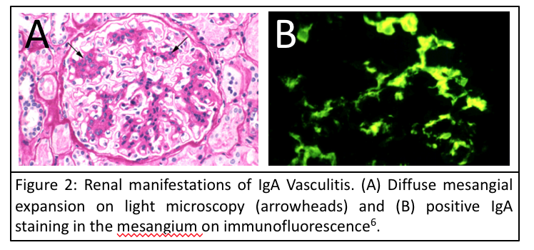 Conclusions: IgG Vasculitis is rare in adults but is associated with a higher risk for serious complications. Recognition, early diagnosis, and treatment with high-dose steroids are essential to avoiding severe complications of IgA vasculitis, especially in adults.