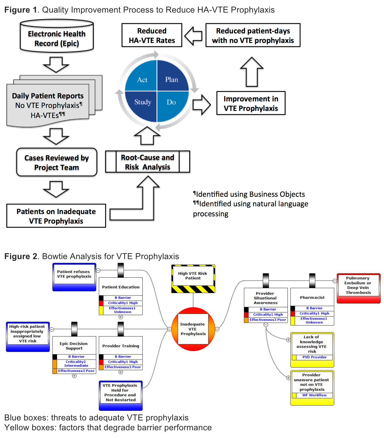 Purpose: To reduce HA-VTE rates through an innovative QI process that leverages novel data analytics tools and Bowtie risk analysis methodologies used in the airline traffic control and nuclear energy industries.