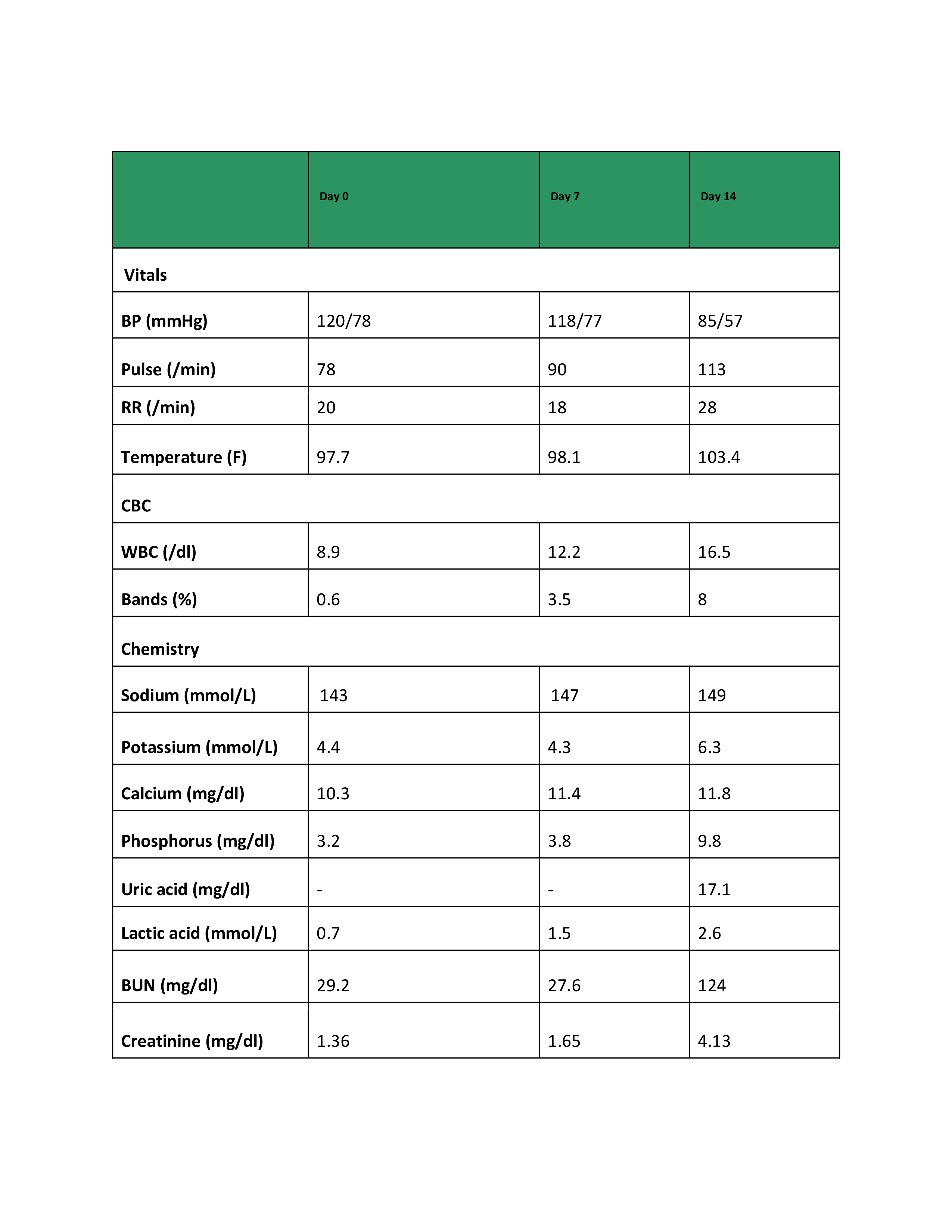 Case Presentation: 91-year-old Caucasian male with dementia, prostatic adenocarcinoma, and chronic urinary retention with an indwelling foley catheter. He was found unresponsive after an unwitnessed fall at his assisted living facility. His family noted progressive cognitive decline with hallucinations over the prior month and a 2-week history of erythematous maculopapular rash on the chest. On admission, creatinine was 1.36 mg/dl, urinalysis suggested catheter-associated Urinary Tract Infection (CAUTI). Imaging further showed no acute intracranial abnormality, mild interstitial edema with small pleural effusion, and mild right hydronephrosis. He was diagnosed with acute metabolic encephalopathy from CAUTI and treated with broad spectrum antibiotics. During hospitalization, the rash progressed rapidly with clinical deterioration (table) and severe sepsis. Sweet syndrome was suspected and punch biopsy performed. Blood and urine cultures remained negative. He developed treatment-resistant, PTH-independent hypercalcemia, concerning for malignancy. Skin biopsy revealed dermal infiltration by atypical B-cell, high proliferative index (Ki-67>90%). IHC was positive for CD20, CD10, c-Myc, and BCL-2. FISH identified c-MYC and BCL2 rearrangements, negative for BCL-6, MUM1, HHV8, and EBV, confirming High-Grade B-cell Lymphoma (HGBL) with MYC and BCL2 rearrangements, consistent with double-hit lymphoma with primary cutaneous involvement. Despite escalation of care, his clinical course was fulminant, and he succumbed within two weeks of admission.