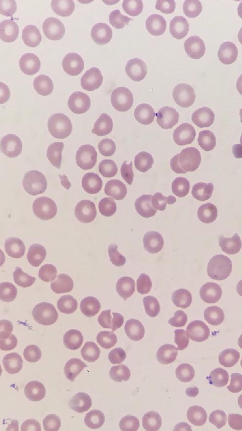 On presentation, patient’s vital signs were stable with physical exam significant for jaundice. No petechiae or purpura were noted, and neurological exam was benign. Fecal occult blood test was positive. Laboratory study revealed hemoglobin of 7.1g/dL, hematocrit 19.7%, platelet 10,000/uL, creatinine 6.16mg/dL, BUN 95mg/dL, AST 81IU/L, total bilirubin 8mg/dL with direct bilirubin 0.7mg/dL. Patient had normal hematologic, hepatic and renal functions two weeks prior. Peripheral blood smear showed moderate schistocytes (See attached image). Lactate dehydrogenase was elevated at 2989 IU/L, INR 1.3, D dimer 3.67ug/ml. Complement Factor H levels were within normal range. Stool studies was negative for E. Coli O157 and Shiga toxin.