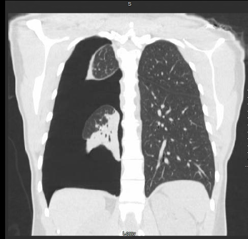 – But patient continued to have chest pain. Repeat CT chest which showed no improvement in the pneumothorax and trapped lung.