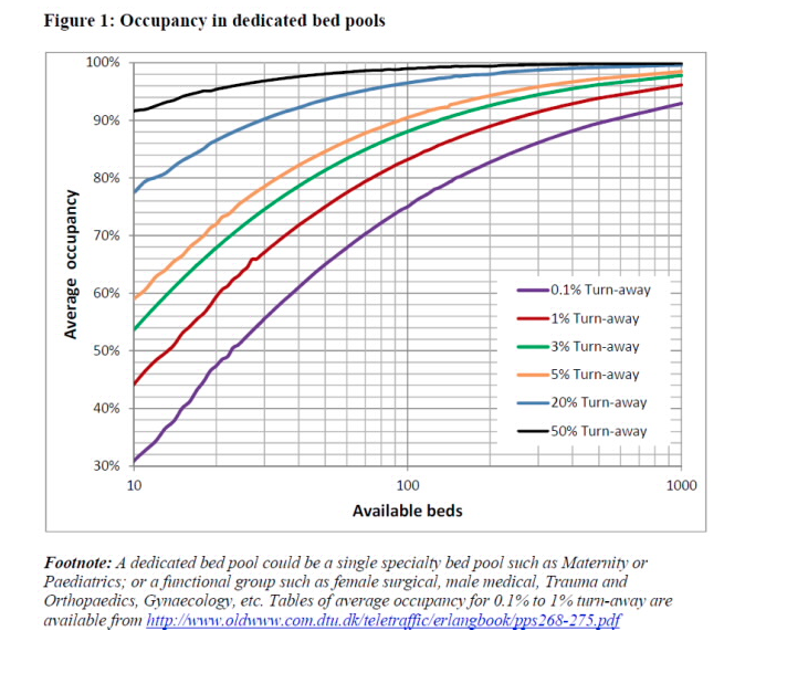 Conclusions: Smaller hospitals begin to get crowded at lower occupancy rates