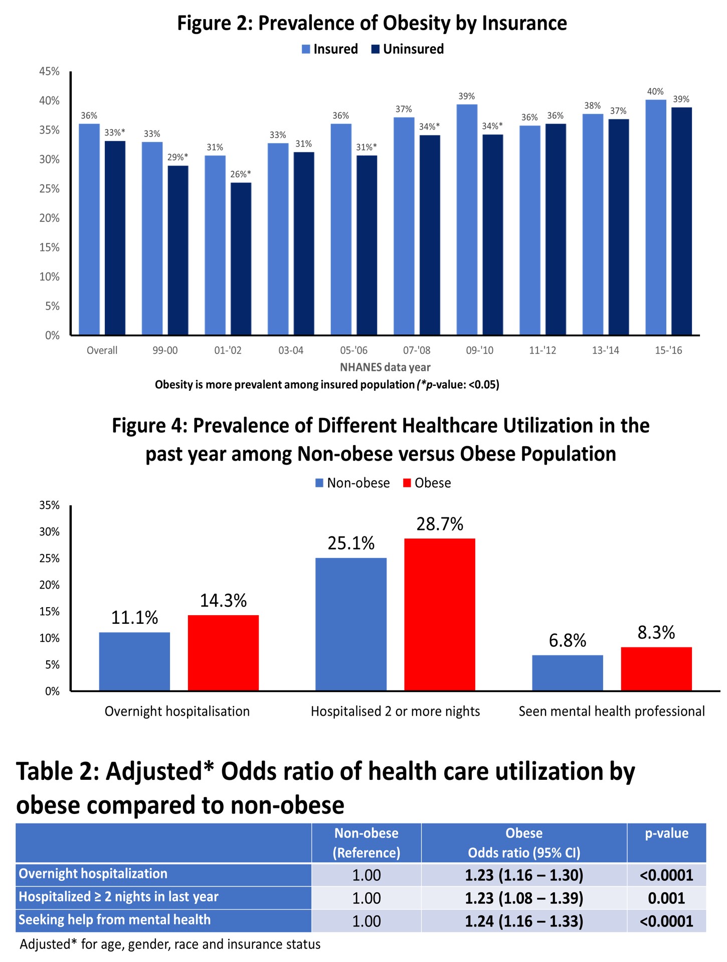 Conclusions: Despite more healthcare access in comparison to non-obese, trend in obesity is increasing. Opportunity remains among health care professionals and institutions to recognize obesity as a disease and take measures for early intervention to halt its current trend.