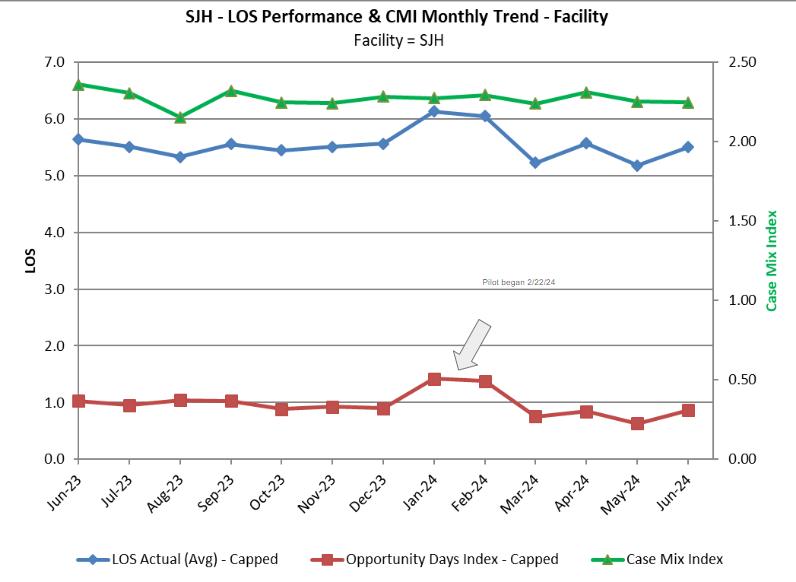 Conclusions: We have achieved more collaboration amongst team services, been able to identify barriers and resolve them more quickly, improve LOS and reduce opportunity days significantly, identify unnecessary procedures that can then be shifted to the outpatient setting thus reducing denials, and more proactive discharge planning. Overall, the process change has empowered the Provider, bedside Nurse, and CM with the most information about their patients, which can then be shared with patients and their families thus improving patient satisfaction.