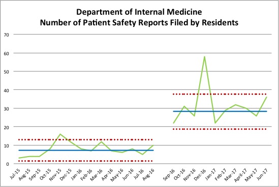 Background: Residents, because they are on the frontlines of the provision of care, are integral to improving care. Yet the Accreditation Council for Graduate Medical Education (ACGME) has reported residents are not as engaged in improving patient safety as they could be, noting, “Though most residents and fellows were aware of their [clinical learning environment]’s process for reporting patient safety events, fewer of them appeared to have used it themselves to report events.” We have made this observation at our academic medical center, where residents in the Department of Internal Medicine report an average of 7 safety events per month (N = 87 over 12 months).