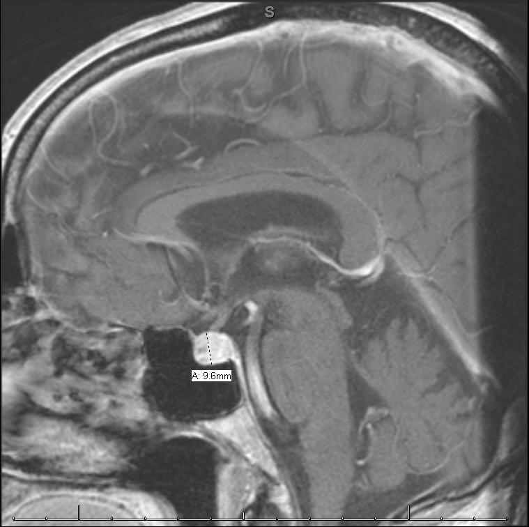 Discussion: Hypophysitis is a well-described immune related adverse effect (IrAE) of the checkpoint inhibitors. These phenomena occur more frequently with CTLA4 antibodies such as nivolumab than with PD 1 antibodies such as ipilimumab. These phenomena can target any organ system and can occur at almost any time after administration. Most IrAEs resolve within a few months other than endocrine effects which will require long term hormone replacement. After an IrAE occurs there is debate about whether treatment regimens should be modified and if so how should they be modified. One small study found no difference in a patient’s time to treatment failure between those who did vs. those who did not modify immunologic regimens due to IrAEs. This would suggest then that modifying an immunologic regimen after a patient experiences an IrAE is safe and efficacious.