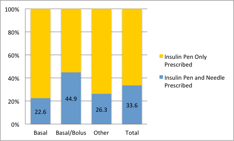 Conclusions: We found that up to 66% of patients discharged from our hospitals with insulin pens do not receive an associated prescription for pen needles. Patients discharged on basal or basal-bolus insulin represent a high risk group. Future quality improvement projects are required to improve a safe discharge process for patients with diabetes treated with insulin.