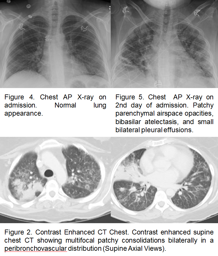 Discussion: Cytomegalovirus infection in immunocompetent hosts is common but usually asymptomatic and self-limited not requiring hospitalization. Severe and tissue invasive infection/reactivation requiring hospitalization are seen in patients with impaired cell-mediated immunity such as in acquired immunodeficiency syndrome (AIDS), transplant patients, or patients on immunosuppressive therapy including steroids. T cells play a vital role in CMV virus replication and controlling disease. An effective immune response to CMV is required otherwise viral replication and immune evasion leads to dissemination and tissue invasion as seen in this case.