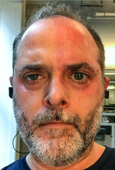 Case Presentation: A 46 year-old man with a past medical history of untreated hypertension presented with right ptosis and miosis. The patient was in his usual state of health until one month prior to presentation, when he developed right retrobulbar pain in the absence of additional upper airway or constitutional symptoms. The patient subsequently noticed right eyelid droop and right periorbital swelling. During an aerobic exercise session, the patient noticed hyperemia and perspiration limited to the left half of his face; he took a self-portrait using his cellphone camera. The patient immediately presented to his primary medical doctor’s office, where his blood pressure was over 200/100 mmHg. He was referred to the Emergency Department. Physical exam revealed right eye ptosis and miosis, and the patient’s self-portrait confirmed anhidrosis, consistent with Horner syndrome. The patient’s blood pressure was 211/176 mmHg; physical and neurologic exams were otherwise normal. He has no family history of connective tissue disease. MRI and MRA of the brain, head, and neck revealed right internal carotid artery dissection without evidence of ischemia or infarction. He was admitted to the hospital. Blood pressure was controlled with oral anti-hypertensives. Aspirin therapy and high-intensity statin were initiated. The patient was discharged home with neurologic and vascular surgical follow-up appointments.