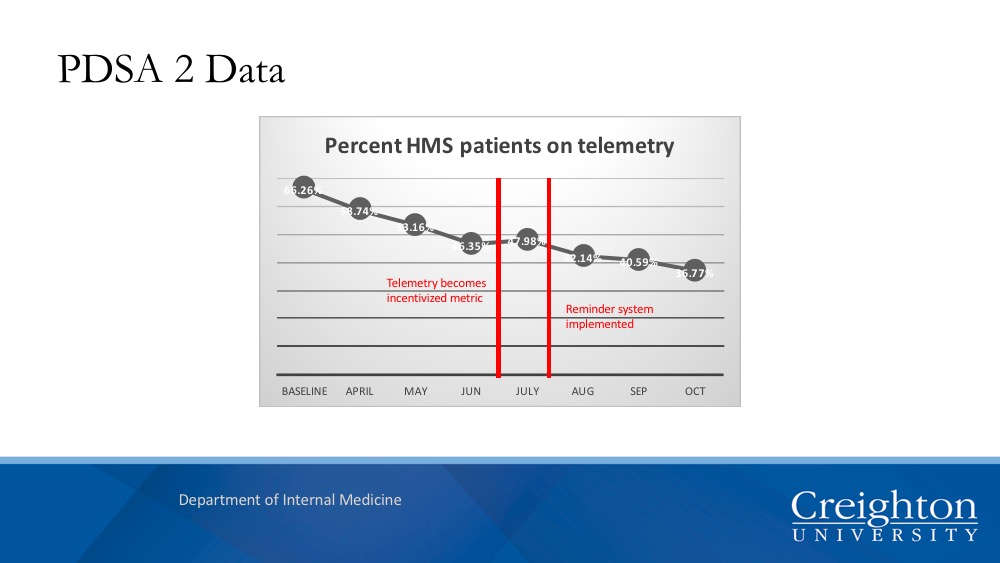 Conclusions: Each iteration of PDSA has resulted in a measurable decreased in cardiac monitoring without a significant increase in codes or RRT events. These data represent a possible translatable model for other medical centers.