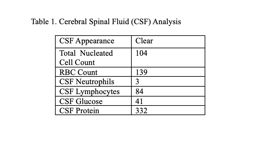Case Presentation: A 30-year-old Spanish-speaking male, initially emigrated from Guatemala over 10 years ago now homeless in Central Park with active HCV and severe alcohol use disorder, presented with 2-months of persistent frontal headache, subjective fevers, chills, and weight loss. Initial exam unremarkable except for a fever of 100.6°F, mild hyponatremia (132 mmol/L) and elevated AST (126 U/L). Lumbar puncture showed lymphocytic pleocytosis, elevated protein, and low glucose (Table 1). CSF AFB stains were negative, and the Xpert MTB/RIfPCR testing volume was insufficient. MRI Head revealed a 2×2 cm rim-enhancing lesion in the right frontal lobe with leptomeningeal enhancement. CT of the chest, abdomen, and pelvis showed numerous bilateral pulmonary nodules and mesenteric/retroperitoneal/cardiophrenic lymphadenopathy. Course complicated by acute deterioration of clinical status, found to be febrile and obtunded requiring emergent right craniotomy for brain abscess resection. Intraoperative findings suggested TB, and tissue analysis was AFB stain and culture positive but rifampin-resistance negative. Subsequent MRI brain showed multiple small infarcts and left frontal sulci/insular leptomeningeal enhancement, likely due to TB meningitis. Treatment included high dose dexamethasone for TB meningitis 5 mg IV every 6 hours (20 mg /day total), rifampin 600 mg IV daily (initially 1200 mg IV daily), isoniazid 300 mg oral daily with B6 supplementation, pyrazinamide 1500 mg oral daily, and ethambutol 1200 mg oral daily.