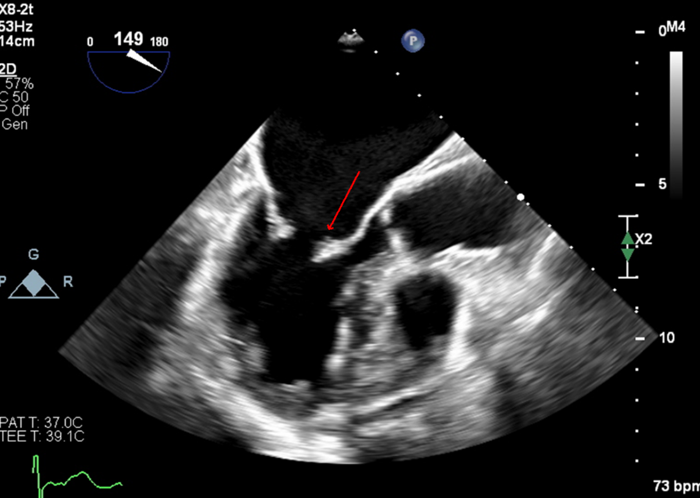 Case Presentation: A 67 year-old female presented to the ED with acute left upper extremity paresis and facial droop. She had 2 previous cardioembolic strokes, in 2007 from mitral nonbacterial thrombotic endocarditis for which she started warfarin and in 2010 after stopping warfarin for 8 months due to menorrhagia. Warfarin was switched to apixaban in 2021 due to patient preference. She also had atrial fibrillation (AF) with CHA2DS2-VASc 5 (diagnosed 2020), mild-moderate mitral regurgitation (on 2020 echocardiogram), hypertension, hyperlipidemia and a 37 pack-year smoking history.She was hypertensive (BP 172/89) with otherwise normal vital signs. Examination was significant for NIHSS 2 (left upper extremity drift and facial droop) and an irregularly irregular pulse. EKG confirmed AF. CT head and neck angiogram showed a proximal right M2 occlusion (Fig.1) with distal flow reconstitution and patent carotid arteries.Neurology, Vascular medicine and Cardiology teams were consulted. She was not a thrombolysis candidate due to apixaban intake and mild signs/symptoms. Apixaban peak and trough levels were both within the expected therapeutic range with anti-Xa levels of 130 and 77 respectively. Thrombophilia testing was negative for protein C, prothrombin gene mutation, factor V Leiden and antiphospholipid antibodies. Work-up for malignancy with CT imaging and cancer screening was unremarkable.Transesophageal echocardiogram was obtained to assess for a cardioembolic cause of stroke and revealed a hockey-stick appearance of the anterior mitral leaflet which is classic for rheumatic valve disease (Fig.2), moderate mitral stenosis and moderate mitral regurgitation. Ejection fraction was preserved at 50% and there was no intracardiac mass or patent foramen ovale.Apixaban had been inadequate anticoagulation as she now had both moderate rheumatic mitral stenosis and atrial fibrillation. She was bridged to warfarin with target INR 2-3 and discharged to valve clinic for follow-up.