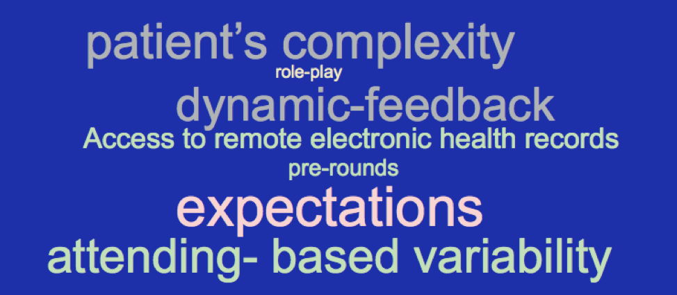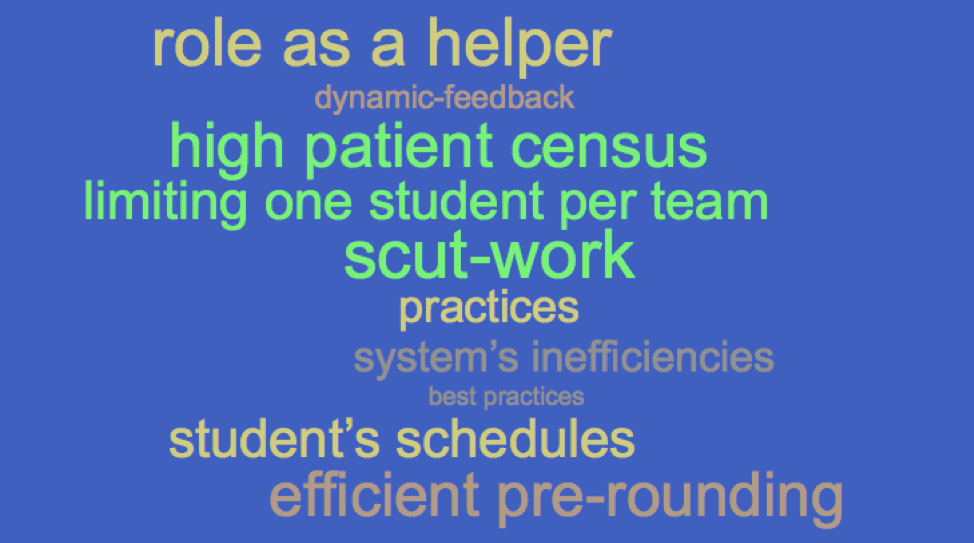 Conclusions: Data collected so far suggests that students appreciate variability in different attending’s style of working and teaching and are willing to adapt as long as expectations are discussed beforehand. They really value dynamic feedback. The hospitalist attendings perceived high patient census as the biggest barrier to providing better learning experience for students. Changes recommended by them included more proactive involvement of students in the logistics of patient care and a desire for a set of recommended best practices to optimize learning experiences on hospitalist teams.