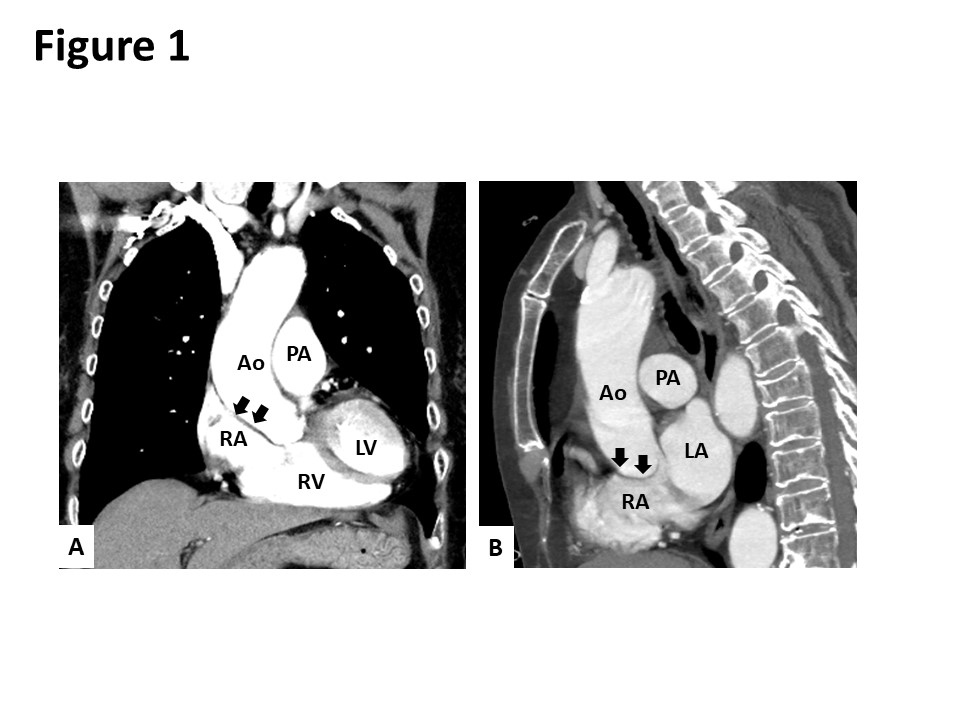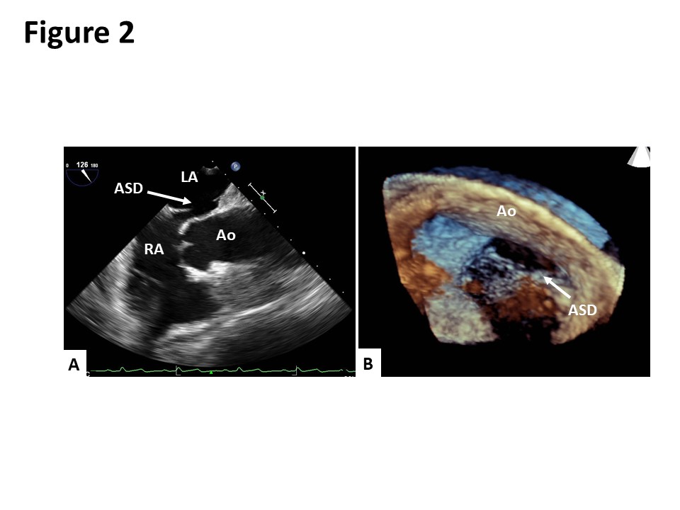 Case Presentation: An 80-year-old Japanese woman presented to our hospital with dyspnea in the sitting and standing positions. Two months prior to her admission, she had presented to another hospital with multiple vertebral compression fractures. After being discharged from the hospital, she developed dyspnea in the sitting and standing positions. She also reported an episode of syncope. Although the patient’s oxygen saturation on room air was 98% in the supine position, it declined to 83% in the sitting position and dropped further to 65% in the standing position. Contrast-enhanced computed tomography revealed the elongation of the aorta, which was compressing the right atrium and distorting the position of her heart (Figure 1). A transesophageal echocardiogram showed an oval-shaped secundum atrial septal defect (ASD) measuring 14 mm x 7 mm in size with a deficient aortic rim (Figure 2). The surgical closure of the ASD was performed. Following surgery, her oxygen saturation in the sitting and standing positions recovered to 98% on room air. She was discharged on the 23rd day after the surgery without any complaints of platypnea.