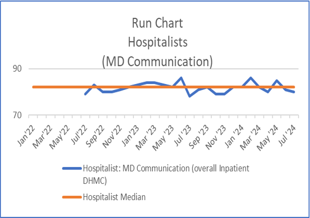 Background: Effective discharge communication is critical to ensuring safe patient transitions from the hospital and can improve outcomes. We have observed declining HCAHPS communication performance across our Section of Hospital Medicine and the transition out of the hospital was identified as a significant contributor. HCAHPS data was too slow to inform real-time improvement, so we developed a real-time feedback approach.
