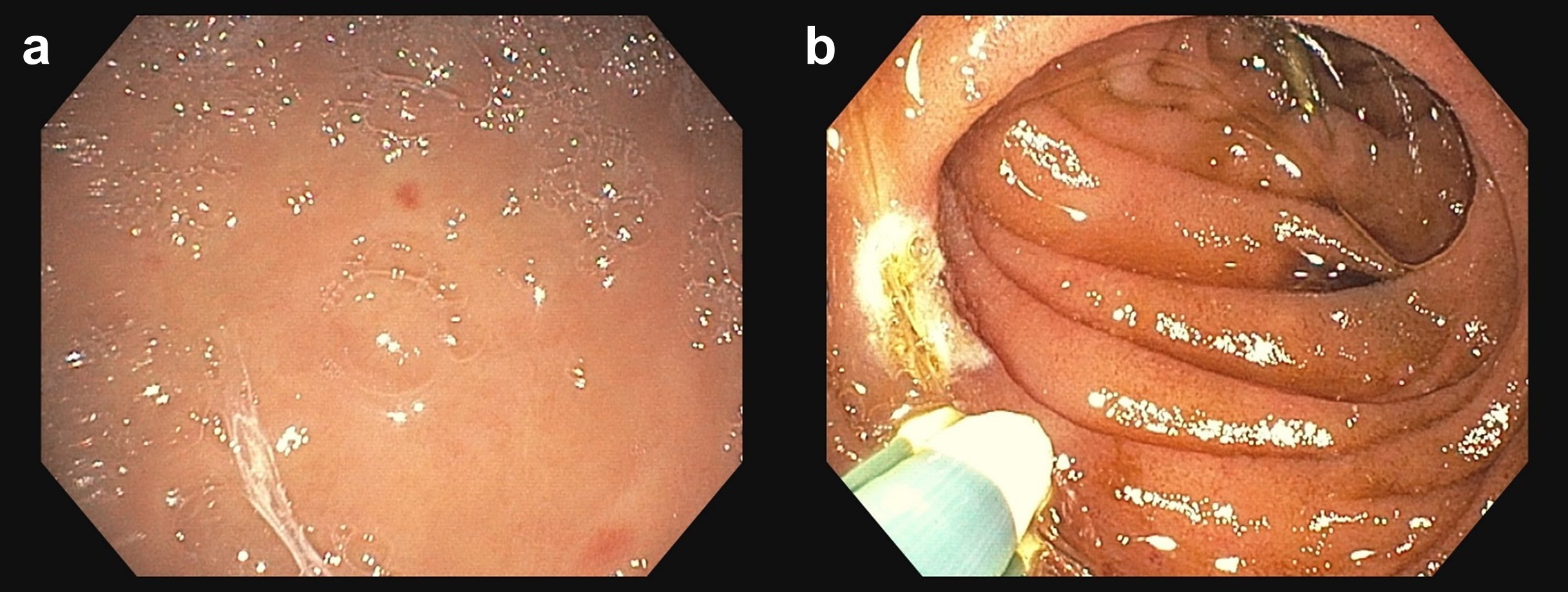Case Presentation: A 75-year-old male with a history of gastrointestinal bleeding (GIB) due to angiodysplasia, aortic stenosis (AS) status post TAVR, moderate-severe mitral regurgitation (MR), CKD, GERD, and atrial fibrillation not on anticoagulation presented due to lightheadedness for 1 day when standing up, and fatigue for a few weeks. He also reported dark brown stools but no melena. He was admitted 4 months prior for similar complaints at which time endoscopy revealed bleeding angiodysplasia in the duodenum (2nd portion) and 2 large non-bleeding cecal angiodysplasia. He denied syncope, chest pain, dyspnea, vertigo, hematemesis, and hematochezia. He reported no NSAID use except aspirin 81mg, iron tablets, bismuth, international travel, significant alcohol consumption, and liver disease.He was vitally stable without jaundice but appeared fatigued. Cardiac examination revealed a systolic/holosystolic murmur at the left sternal border. Labs revealed a hemoglobin of 4.2 (9.3 two months prior) with a low-normal MCV (81.7). BUN/Cr ratio was 31. Liver chemistries and INR were overall unremarkable. LDH was elevated (238), haptoglobin was normal and peripheral smear revealed no schistocytes. Workup was suggestive of iron deficiency anemia. The patient’s presentation was thought to be due to an occult recurrent upper or small bowel GIB prompting RBC transfusions, IV PPI, and endoscopy. EGD revealed 2 non-bleeding gastric angiodysplasia and 4 bleeding angiodysplasia in the duodenum (2nd and 3rd portions) all treated endoscopically (Figure 1). Capsule endoscopy was suboptimal given retained melanic contents throughout the small bowel. Given the combination of recurrent occult GIB due to angiodysplasia, known prior valvular disease, and CKD, there was high clinical suspicion for Acquired von Willebrand syndrome (AVWS). The activity:antigen ratio for von Willebrand factor (vWF) was < 0.7 suggesting a structural or functional disorder. On multimer analysis, high molecular weight (HMW) vWF multimers were absent/decreased with no increased lower molecular weight vWF multimers suggestive of AVWS. On outpatient follow-up his hemoglobin remained stable and TEE showed moderate-severe MR where the aortic valve prosthesis transvalvular gradient was 14mmHg. Cardiology attributed the AVWS to the moderate-severe MR. They recommended observation with future evaluation for transcatheter mitral valve replacement.