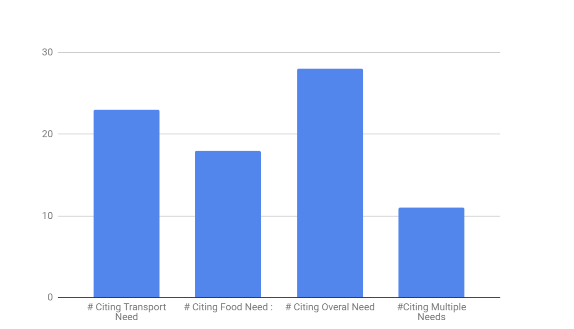 Conclusions: As physicians gain a greater understanding of the socioeconomic barriers their patients face, there is a possibility for further individualization of post-hospital prescribed action. The percentage of transportation , food, and financial needs were a significant portion of those citing needs. As evidenced by Marmot et. al upstream social factors , while poorly understood, significantly impact the health of patient. No longer can the impact of social determinants be ignored (Braveman, 2014). There is a clear need for further research. Firstly to further characterize the issue and secondly to begin understanding a sustainable solution.