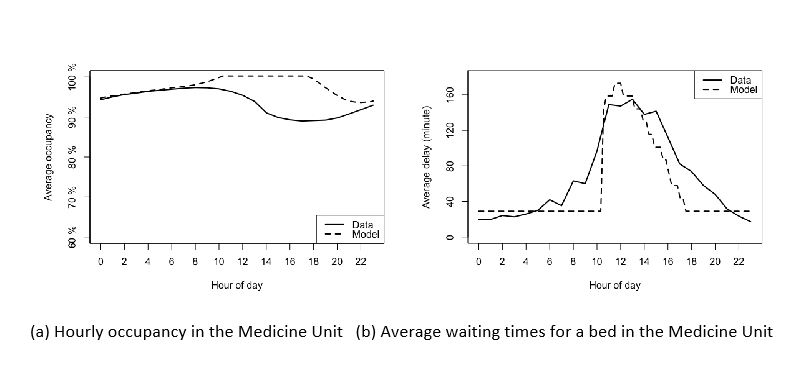 Conclusions: Our model predicted average patient delays to a unit well when compared with actual data. This model can be used to guide future decisions around the optimal number of beds which would be needed for a service to meet a desired wait time goal.