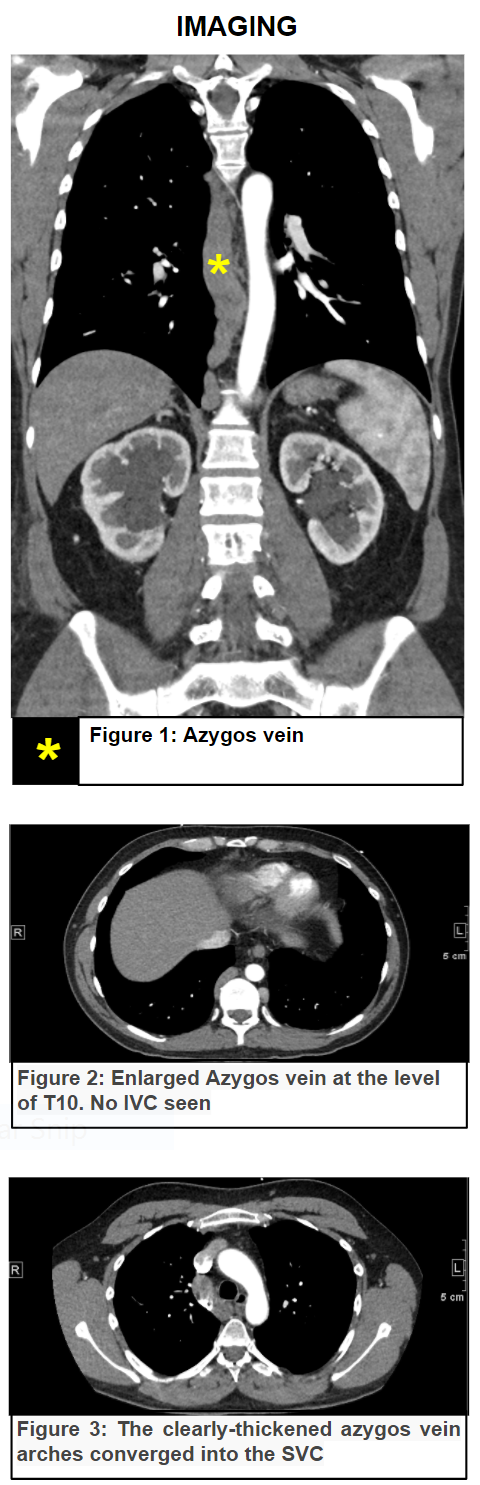 Discussion: Azygos continuation (AC) is a rare anomaly caused by the absence of the hepatic part of the IVC with blood flow to the Azygos vein, which joins the SVC in the right paratracheal space.