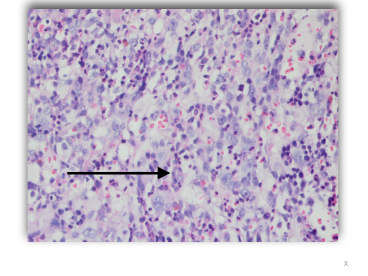 Discussion: Hemophagocytic Lymphohistiocytosis (HLH) is a rare disease characterized by hyperproliferative macrophages which phagocytose hematopoietic elements. Its incidence is estimated to be 1: 280,000. There are two types: primary HLH is an autosomal recessive disorder affecting children most commonly within the first year of life. Secondary HLH is acquired in adults because of strong immunologic activation from systemic infection, autoimmune disease or underlying malignancy. The diagnostic criteria of fever, splenomegaly, cytopenia, hyperferritinemia, hypertriglyceridemia, soluble CD25 receptor level greater than 2400 pg/ml and hemophagocytes on bone marrow biopsy was developed for use in children and is likely less reliable in adults. The patient presented with 6/8 diagnostic criteria and a diagnosis of HLH was established. Although HLH has been reported as a sequela of Coxsackie Virus infection, the patient’s likely trigger was his lymphoma. Treatment involves controlling inflammation with corticosteroids and cyclosporin A. The use of etoposide and anti-thymocyte globulin removes activated immune cells. Treatment of underlying infections if present, supportive care with transfusions and prophylactic antimicrobials is also necessary.