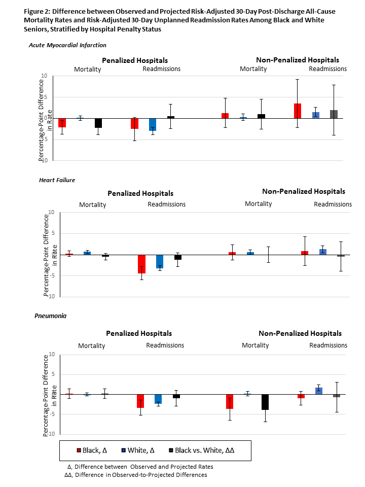 Conclusions: Under the HRRP, racial disparities in short-term outcomes remained stable or improved. These findings provide reassurance that certain value-based payment policies can be implemented without exacerbating racial disparities.