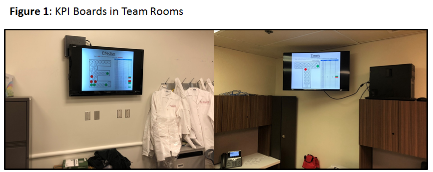 Purpose: The aim of the project was to develop a method to reliably deliver quality data to front line providers in a timely and meaningful format through the use of KPI Boards.
