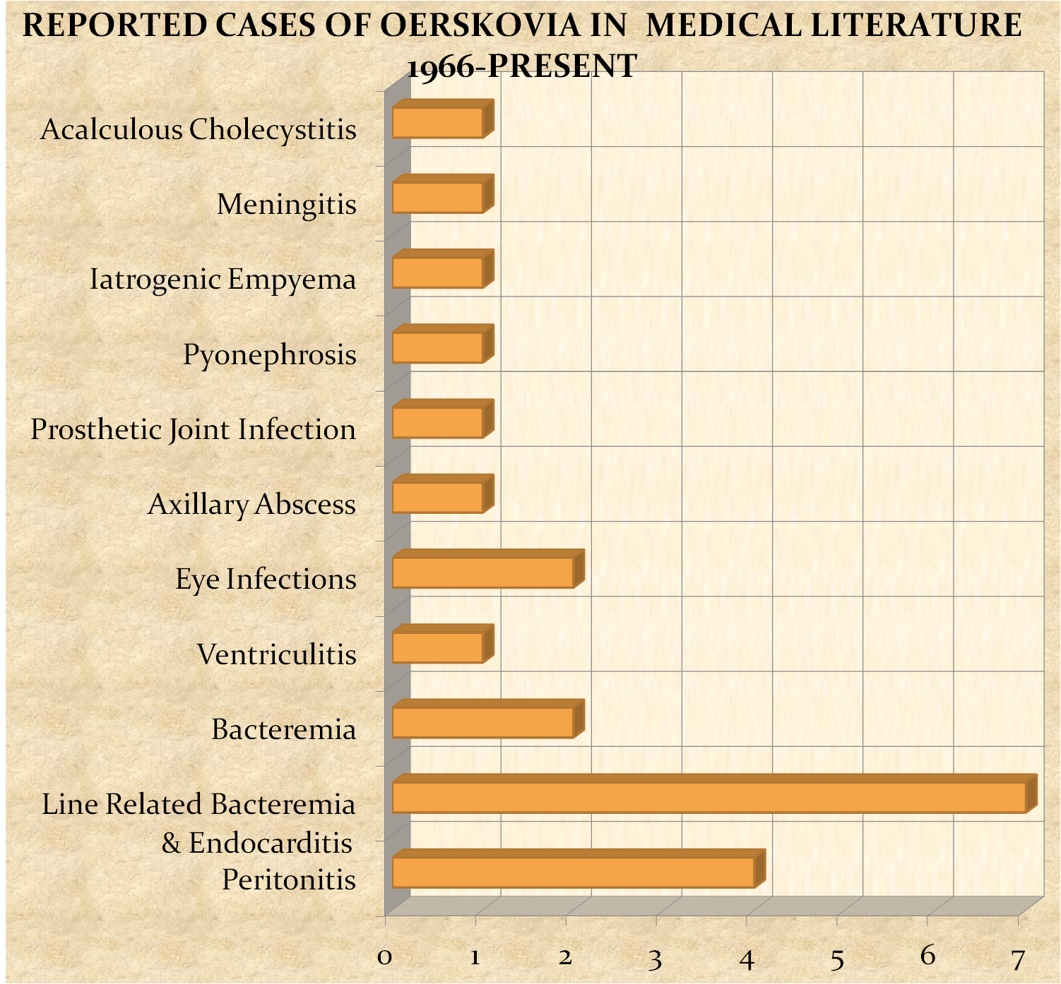 With the upsurge in usage of peripheral lines, catheters and prosthetic material the incidence of Oerskovia may increase in the future with the respiratory tract becoming an important point of inoculation and infection.