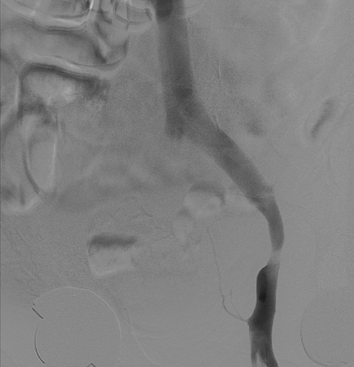 Conclusions: This case has two educational objectives, the first of which is the presentation of a rare variant of May-Thurner syndrome which caused unilateral lower extremity swelling in an otherwise healthy middle-age man. This syndrome is usually caused by compression of the left common iliac vein by the overlying right common iliac artery, but in this case, it was caused by the hypogastric artery which is extremly rare. Second, this case demonstrates the importance of keeping a wide differential diagnosis, and to look for the underlying etiology especially in cases of a unilateral lower extremity swelling. The discovery of his anatomical pathology led to the appropriate management of his symptoms, which would have otherwise persisted in the setting of conservative management.